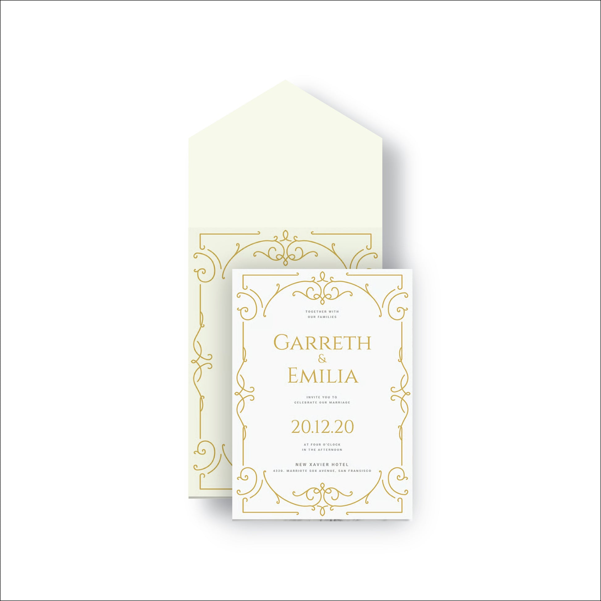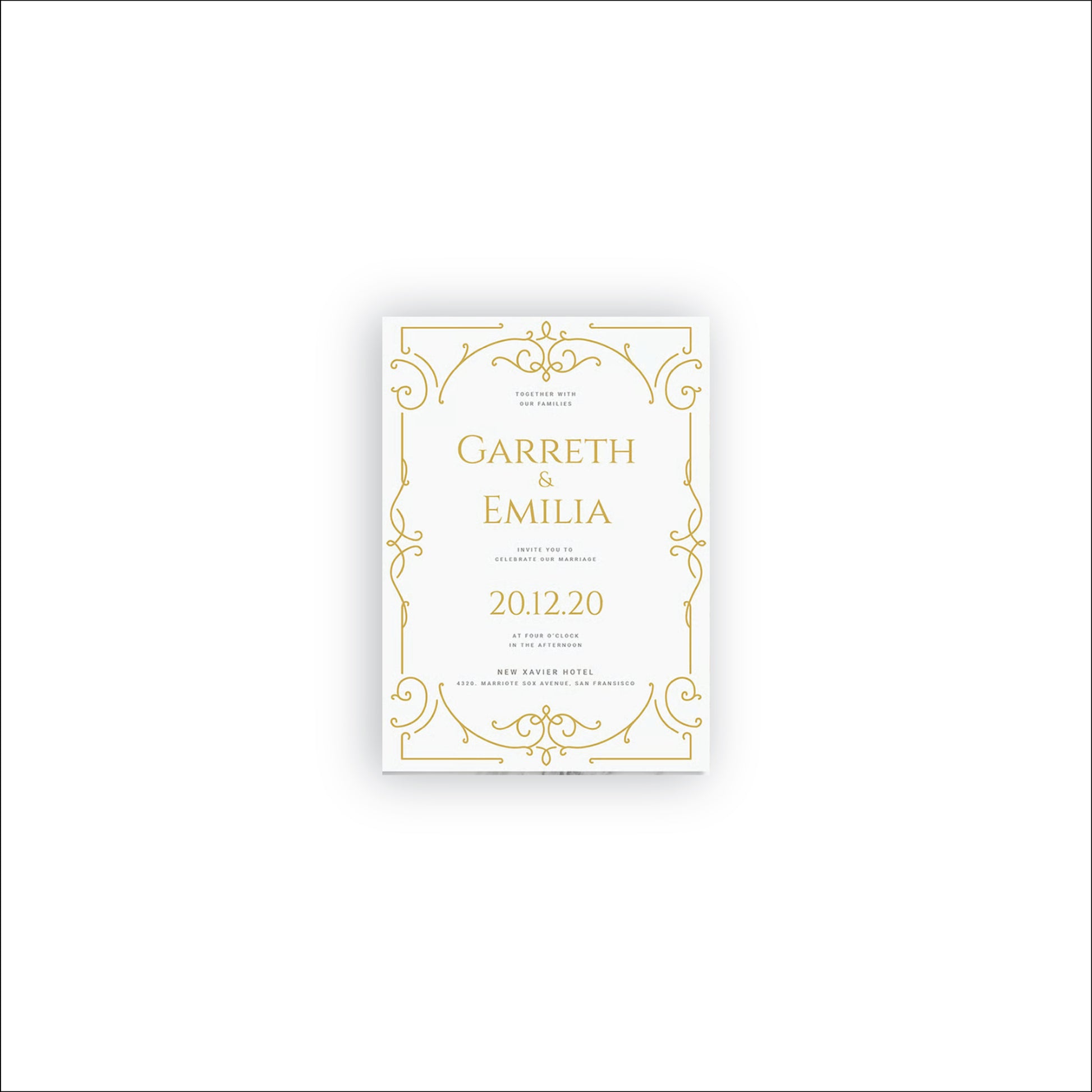 Classic Elegance cards for couples who want that timeless, formal wedding look. The gold scrollwork and ornate border give it that old-school fancy feel without looking outdated. You can ask for particular changes in the design with your own details as per need. The cream background with gold details works for traditional weddings or upscale venues. We kept the center simple so your wedding information stands out clearly against all the decorative elements. These appeal to couples who prefer classic designs over trendy styles. The formal layout gives guests that proper wedding invitation feel. Perfect for black-tie or formal dress code weddings.