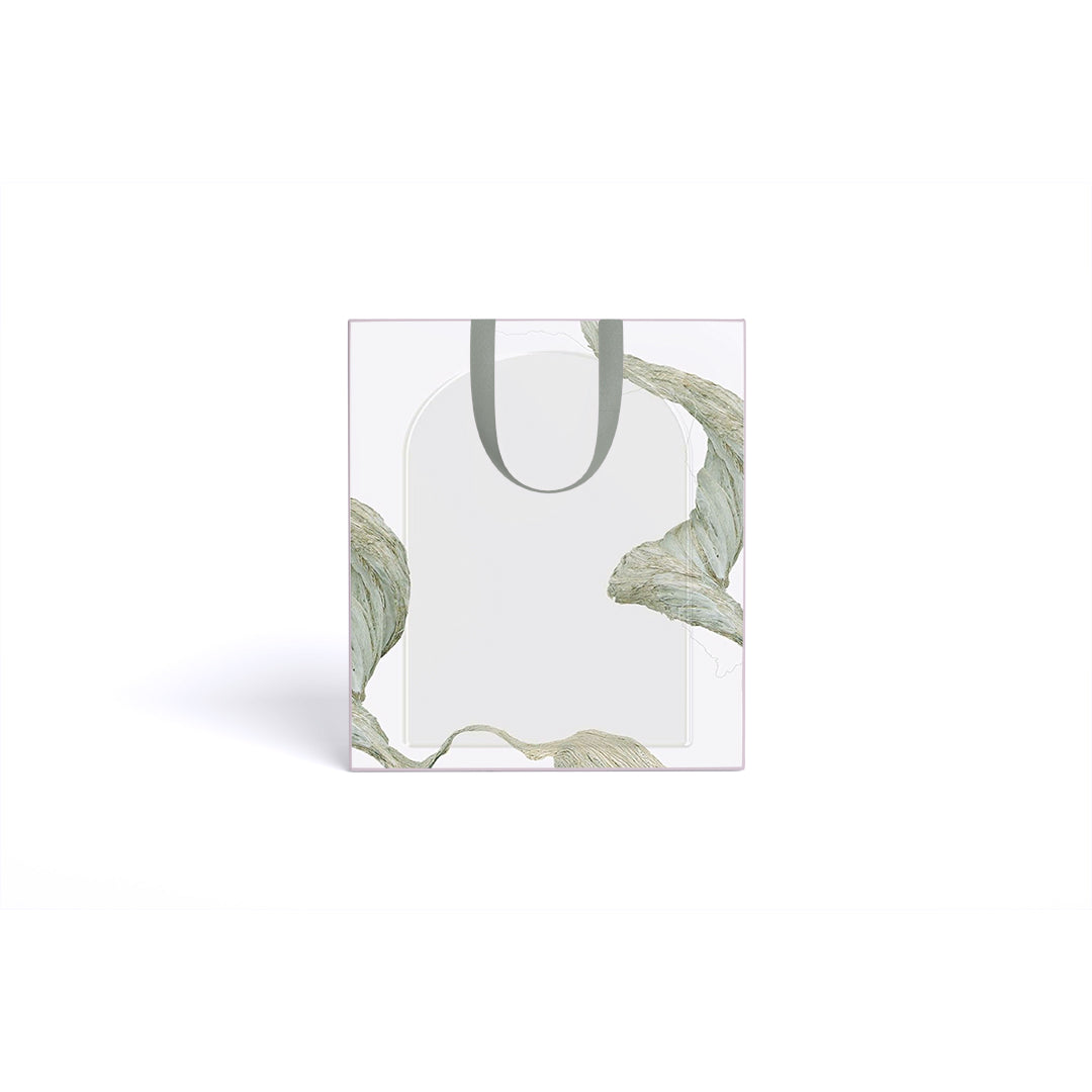This Custom Name & Date Favor Bag is white paper bag with green leaf design on front. Has gray rope handles for carrying. You can add custom names and wedding dates printed on the bag. Simple clean look with botanical pattern. Good for putting wedding favors or gifts inside for guests. The leaf design gives a natural feel. The bag looks sturdy enough to hold small items. Can personalize with the couple's details and wedding info. Nice for outdoor or garden themed weddings. Guests can take home a keepsake after using.