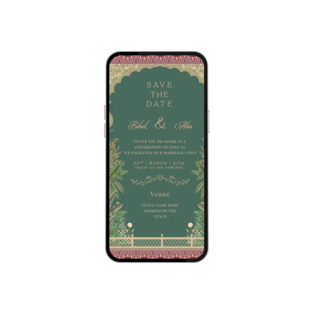 Instaprint makes these e-cards for weddings that people actually use now. You just email them to everyone instead of mailing paper cards. This one has a nice green and gold design that looks fancy enough for big weddings. Couples change the names and dates to fit their event. It's way cheaper than printing hundreds of cards and buying stamps. Plus your guests get them instantly on their phones. Many people expressed that they saved tons of money with such cards. People can click to add the wedding date right to their phone calendar which is pretty convenient.