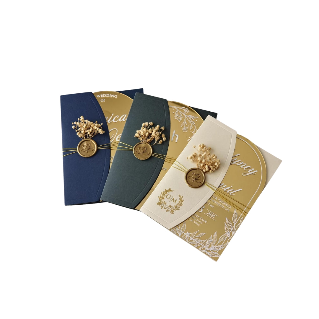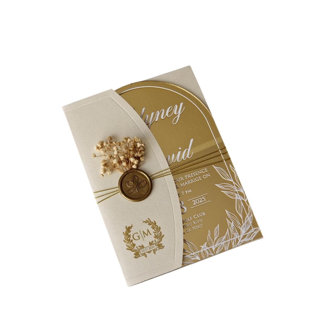 Local vendors notice these cards generate more conversation among guests compared to traditional paper invitations. The wax seal detail and botanical elements appeal to couples wanting that modern luxury aesthetic without the typical high-end price tag.