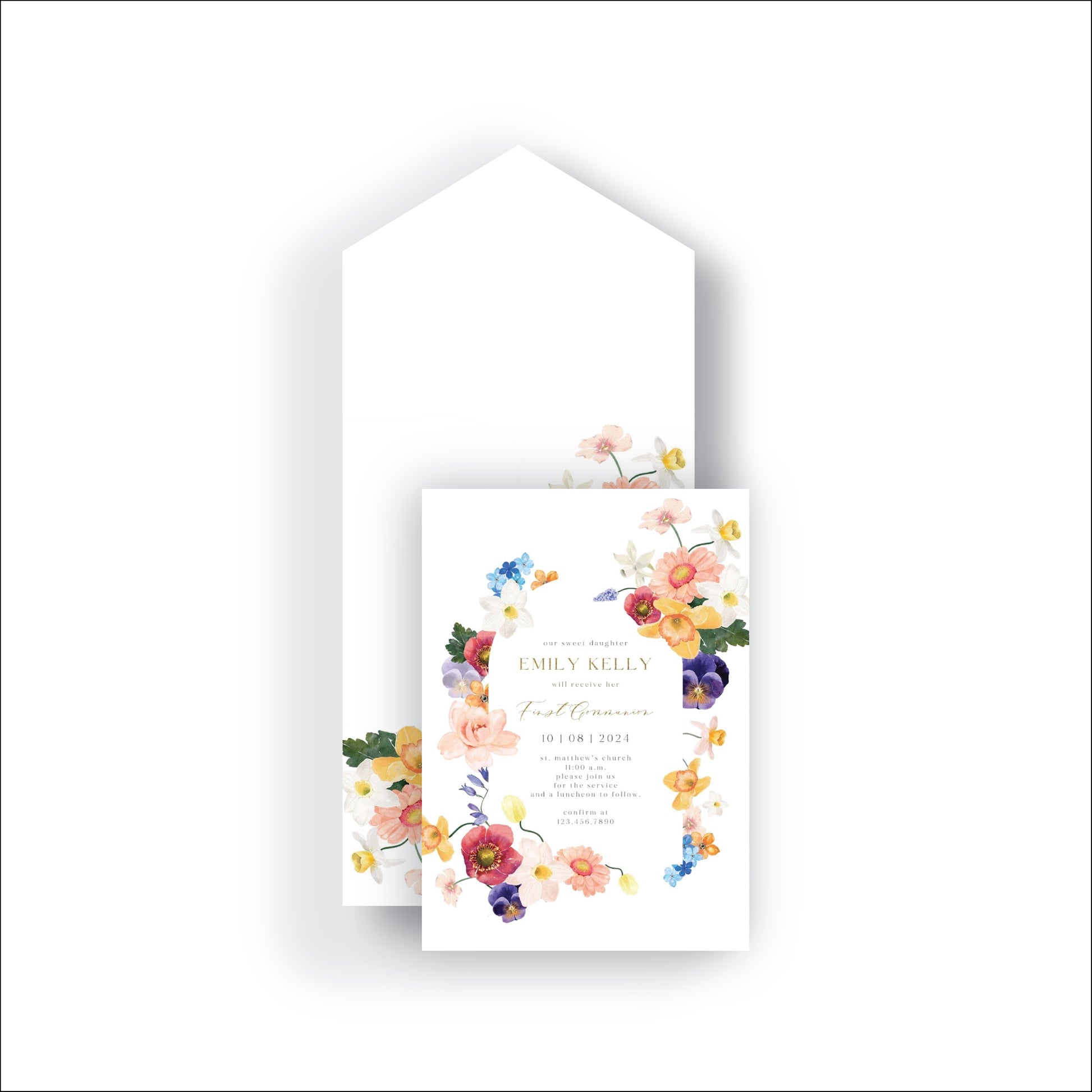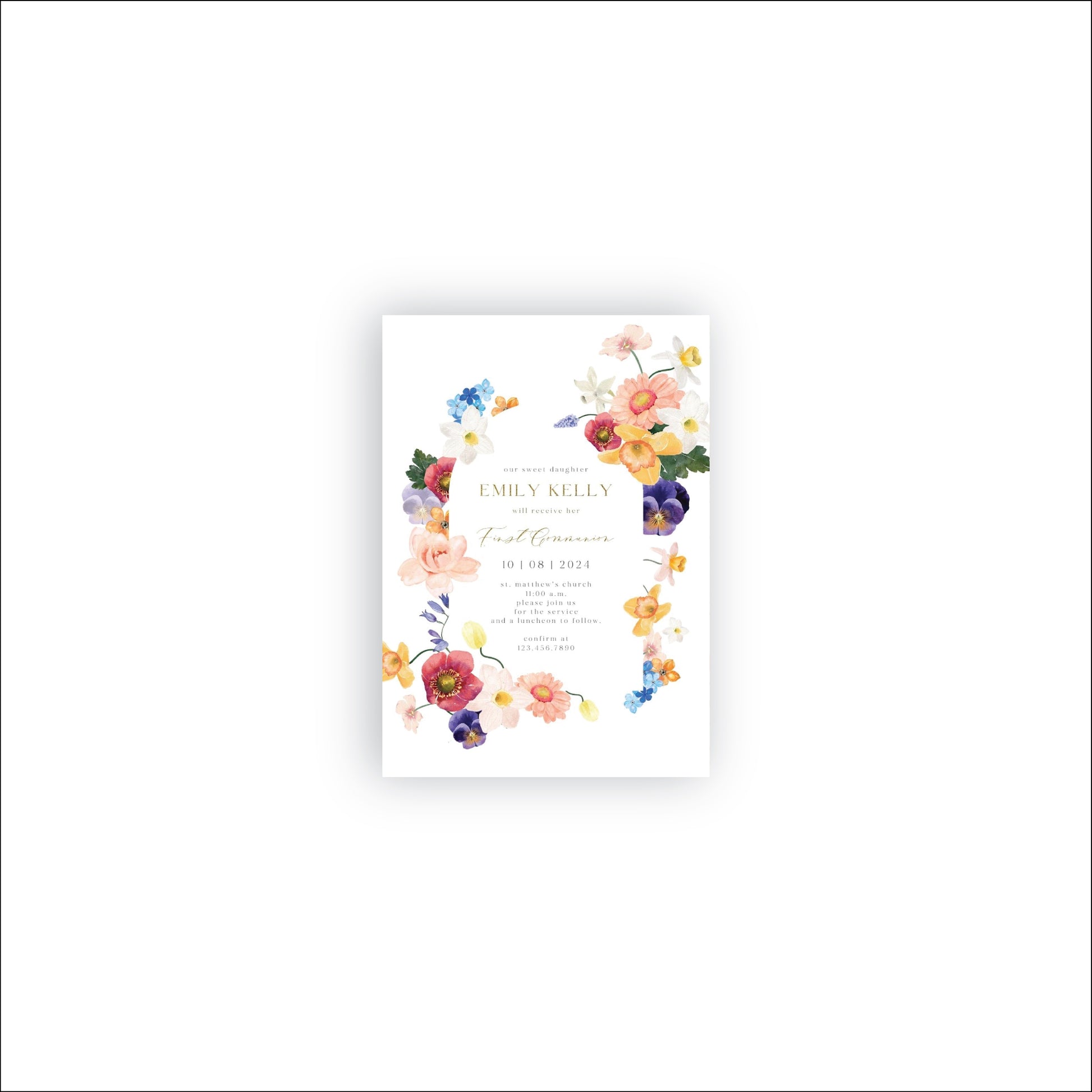 We at Instaprint made these Golden Grace cards with watercolor flowers around the edges. The different colored blooms look hand-painted against the white background. You can get all the desired information printed in readable and clear fonts of your choice. The flowers don't cover up the text so people can actually read your information. These work well for outdoor weddings or if you like that artsy flower look. The colors are bright enough to catch attention but won't clash with most wedding themes. You get the card ready to send to your guest list.